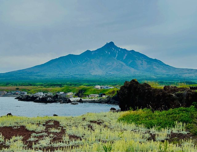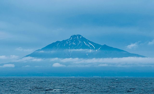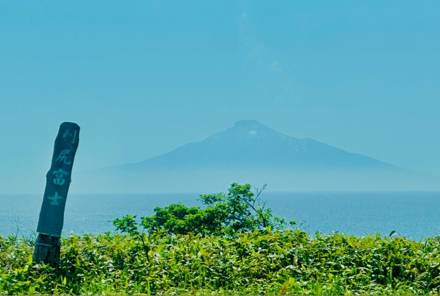 在火車上,誤打誤撞的捕捉到利尻山身影。