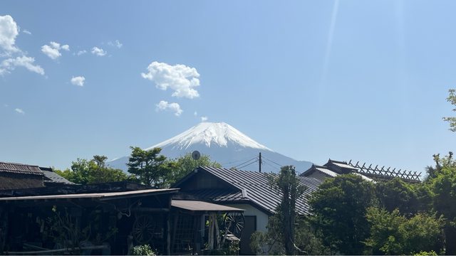 在忍野八海拍的富士山又是另一個樣貌。