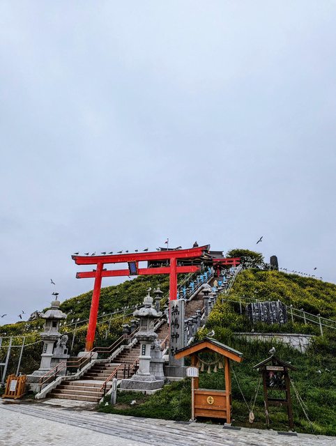 把行李寄放鮫站的置物櫃,步行13分鐘(約1.1公里)到蕪嶋神社看海鷗