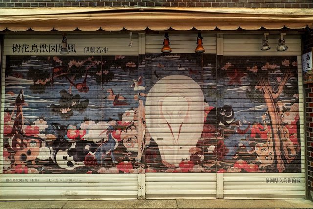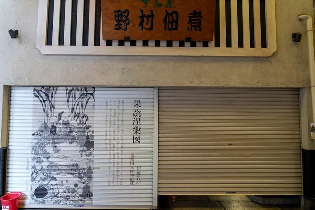 去錦市場拍鐵捲門,之前聽謝哲青提過上面有伊藤若沖的畫作。