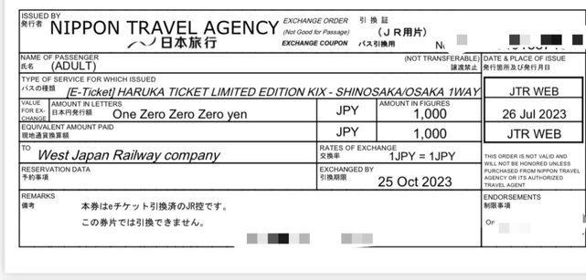 標題[讓售] HARUKA 關西機場 到 大阪/新大阪 單程車