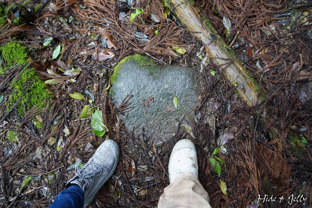 偶然發現地上的愛心石,搭配為了登山城而買的防水鞋,第一次就派上用場的紀念。