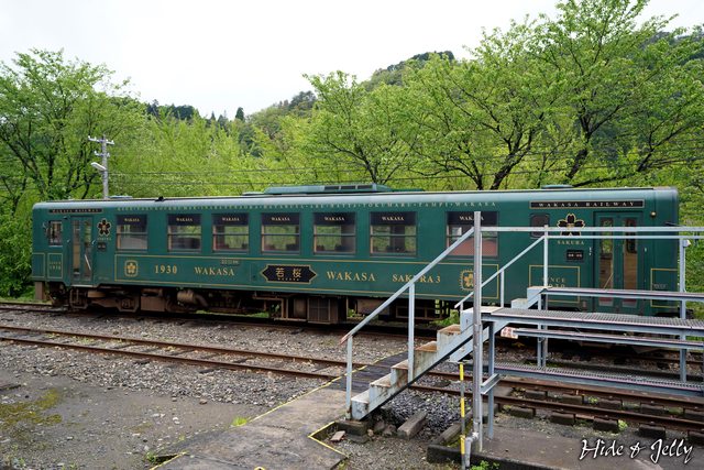 這時突然發現另一個月台後方停放著綠色塗裝的若櫻号,這樣除了隼号之外,若櫻鐵道的