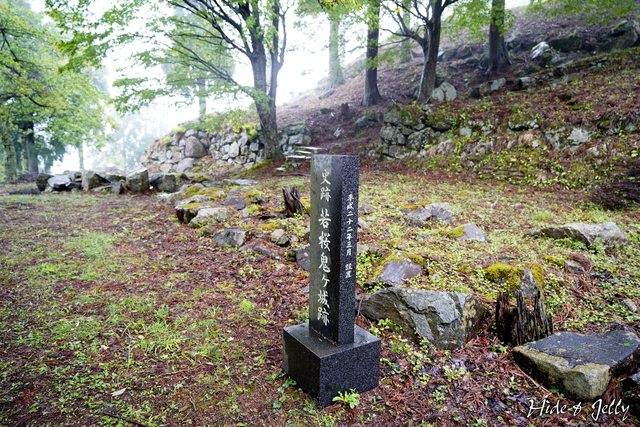 在二の丸可以看到若櫻鬼城的石碑,後面就是本丸的石垣,這個角度,也是若櫻鬼城印章