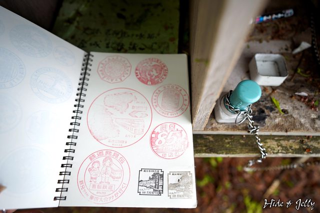小屋正面掛著的木箱,可以看到印章就在相當雜亂的環境中,一旁的留言本也因為前一天
