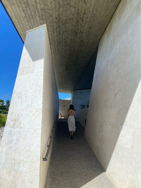還好有來,一走進就超有設計感,入口讓我聯想到電影沙丘,寬闊俐落的建築在沖繩其他