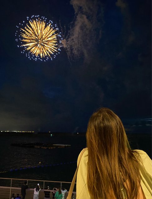 點都略為失望,女友則是非常滿意,還能直接在陽台看美國村施放的煙火,她開心我就放