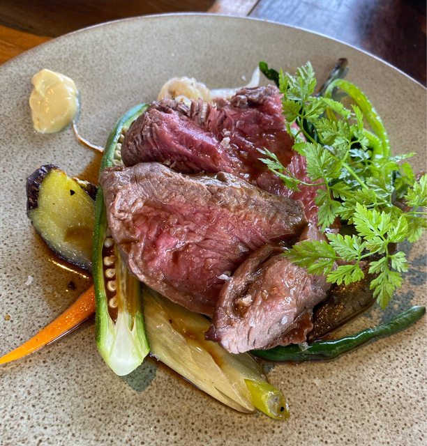 不是標榜A5和牛,但這種適中的油花吃起來更舒服,比前兩晚的好吃多了,我們狂點,酒