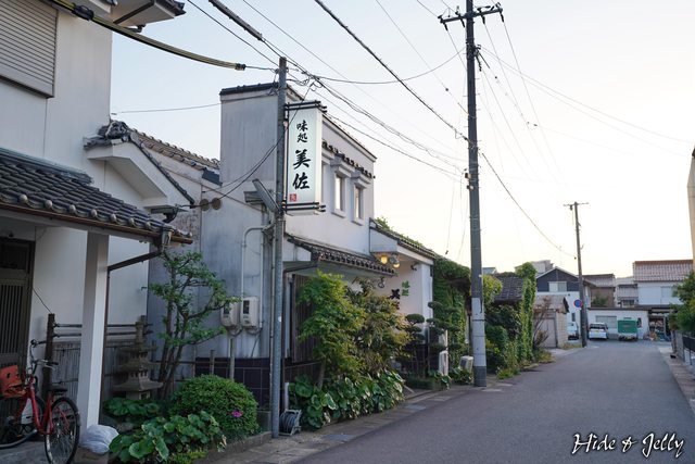 「味処 美佐」位於水木茂街道的中段,南側與其平行的小巷裡。白色的招牌,搭配白色