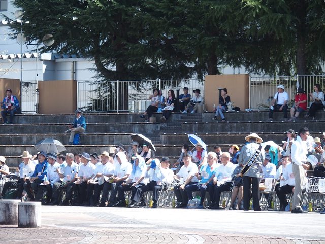 有料觀覽席位的地方仕紳們 (一樣沒有遮蔽物一起曬)