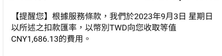 推 gfes90008 : 因為你選台幣結帳,所以扣款當天不管匯率多少就是 09/03 11:48