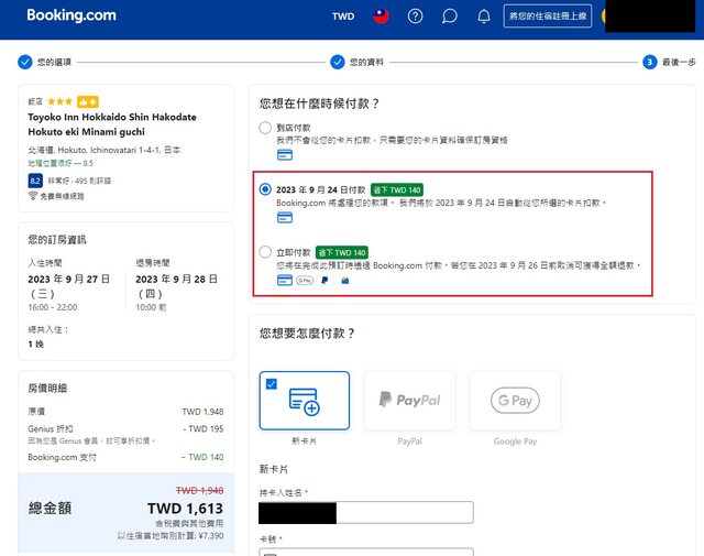 推 sky343434 : 樓上,這是booking ,延後付款不會多收5% 09/03 19:01