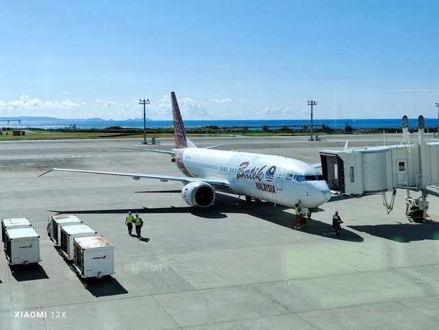 實際起飛約13:30,後因沖繩大雨於空中盤旋後落地