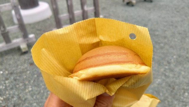 ㄧ下公車旁邊就是銅鑼燒店,一個才100日圓,熱熱甜甜超好吃