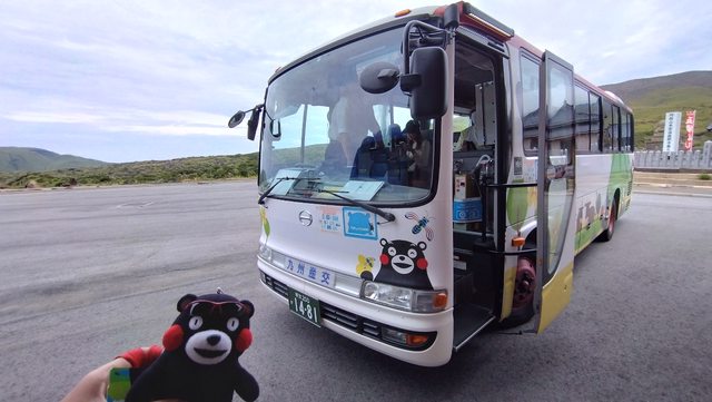 阿蘇火山口路線一天有六班車,剛好遇到週六,海內外遊客眾多,大約30多分鐘到山上的