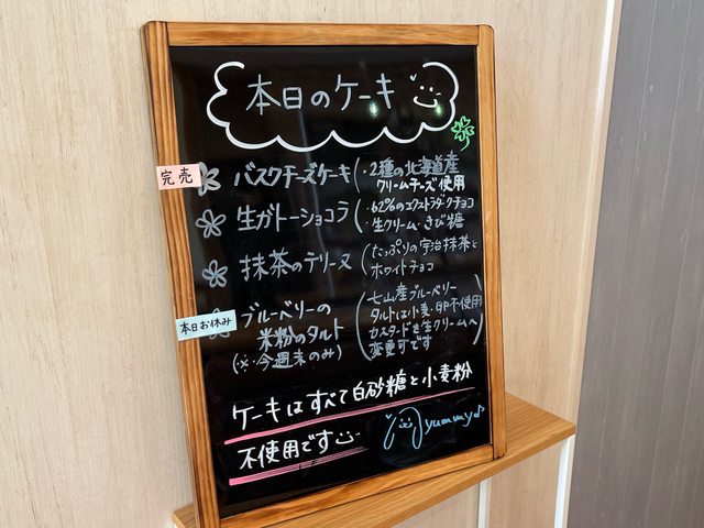 黑板上會寫今日蛋糕有什麼,剛好剩下最後一個我喜歡的巴斯克乳酪蛋糕。