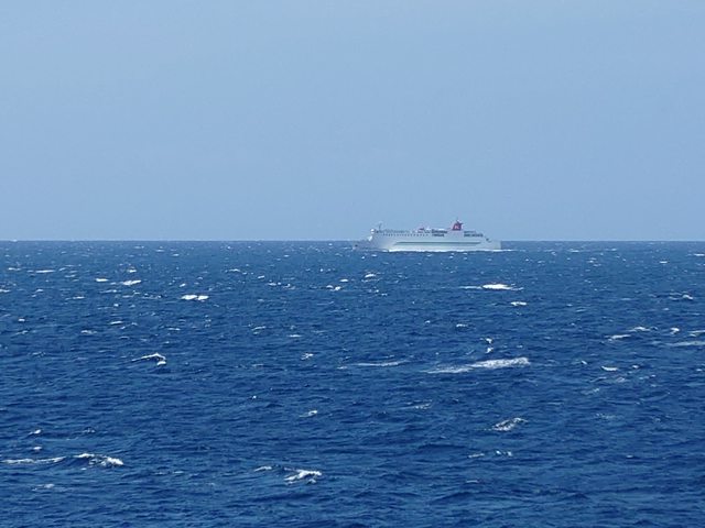 海上隨處拍拍 正好遇到另一家南下的船