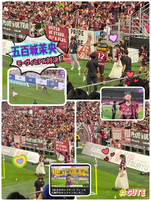 受邀開球的五百城也身穿神戶球衣可愛的登場