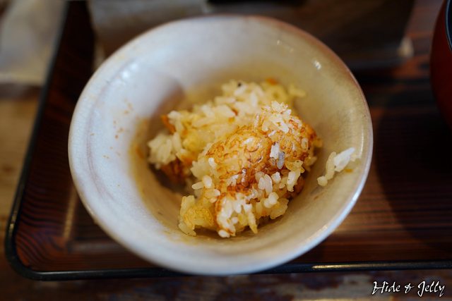 一旁的小飯碗,是把釜飯舀出來吃的,釜底有鍋巴,搭配軟嫩的海膽,軟硬雙重口感在嘴
