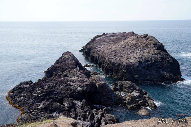 高處前方有兩塊離岸的礁岩,無法攀爬,只能隔著海,欣賞偶爾拍打的浪花。