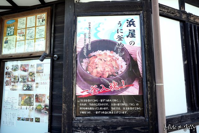 「浜屋」最有名的名物,就是門口這大大海報裡的「海膽釜飯」啊,「一釜入魂」的標語