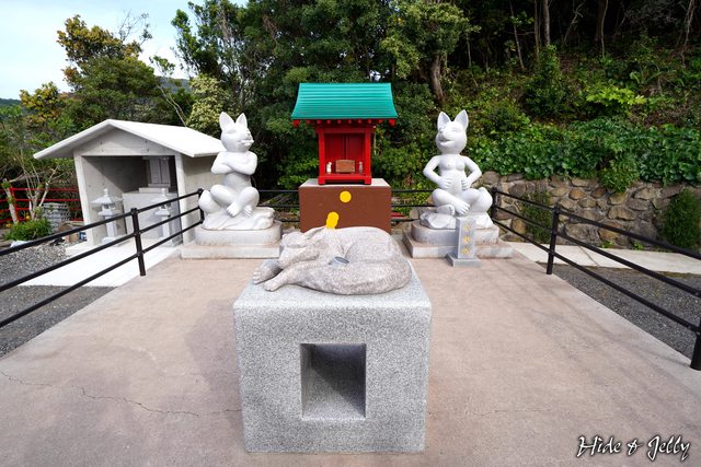 「元乃隅神社」只有小小的本殿,兩旁也是代表稻荷神社系列的石狐,一公一母,右邊的