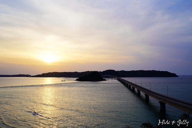 「海士ヶ瀬公園」有「角島展望台」,以略為側邊的高角度欣賞角島大橋,不過夕陽的光
