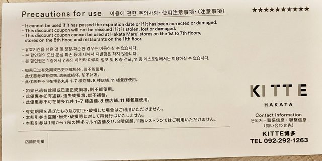 贈送內容:KITTE HAKATA (KITTE博多)餐廳抵用券