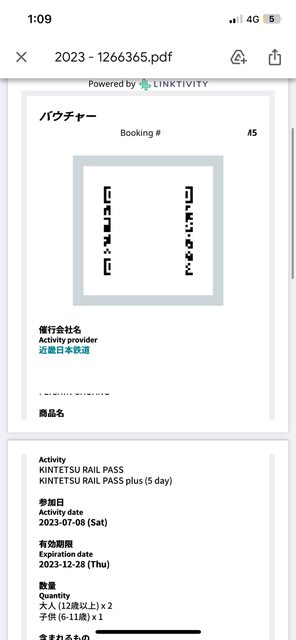 標題[讓售] 近鐵電車周遊券5日券plus2大1小