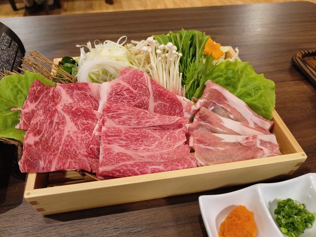 涮涮鍋的料,在訂房的時候就選了栃木和牛+日光豚的組合