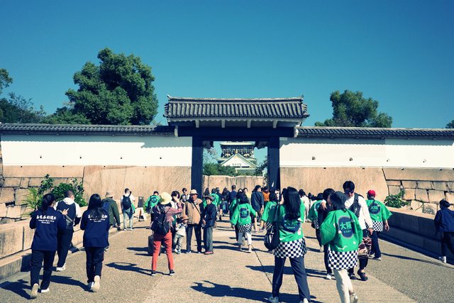 剛好遇到一個旅行團很一致的穿著背後印著大阪的羽織