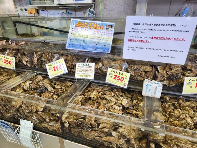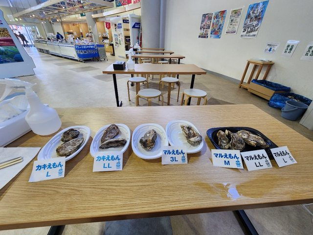 今天只有漁協直売所有開,也只有賣兩種牡蠣跟其他少數魚貨