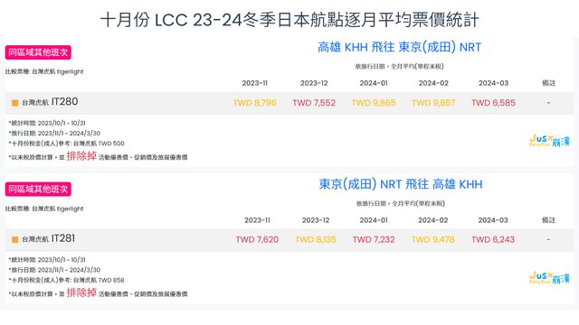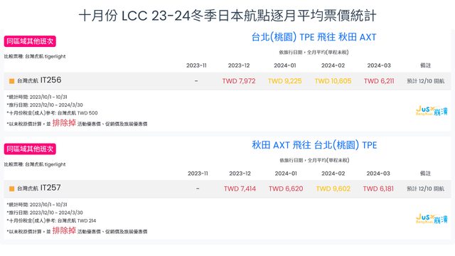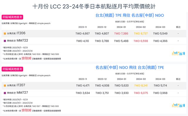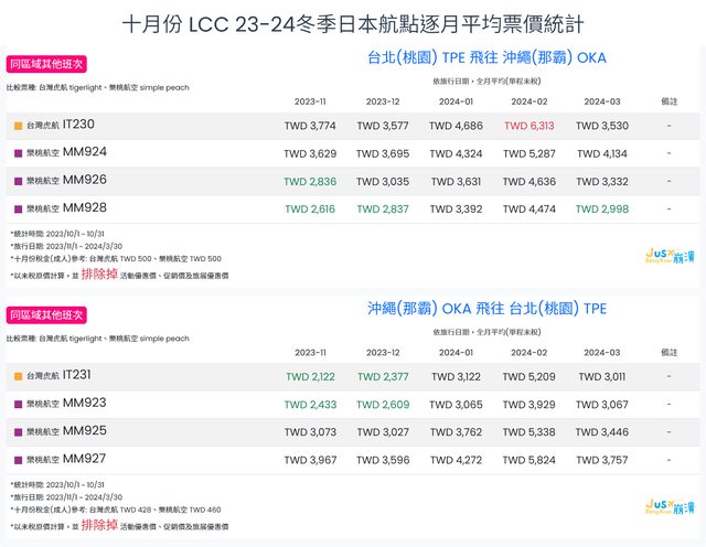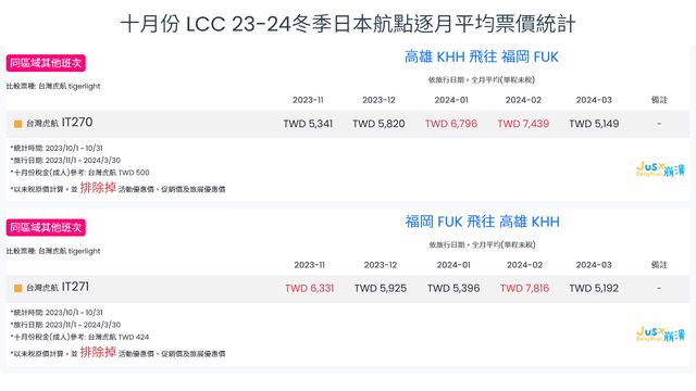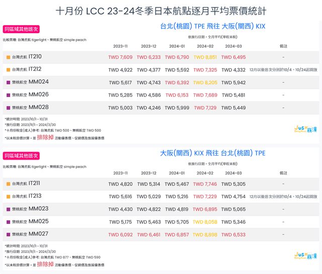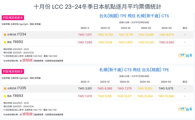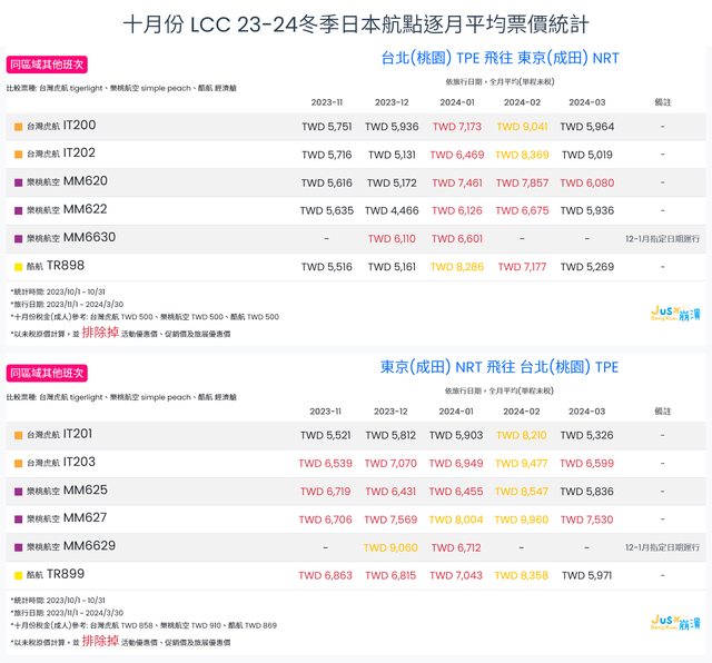 標題[分享] 10月份 LCC 23冬逐月平均票價統計