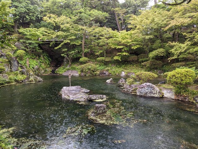 城內宮殿已不存在,但庭院有保留下來,在雨中別有一番風味
