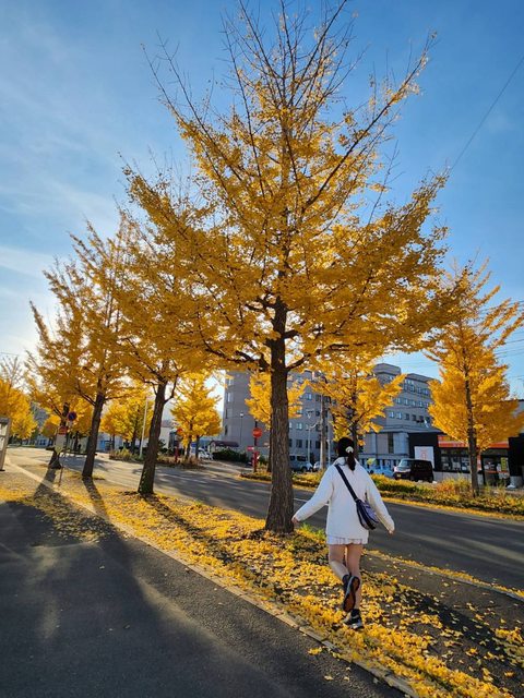 柱吉神社離南小樽站不遠,沿路是金黃色的銀杏