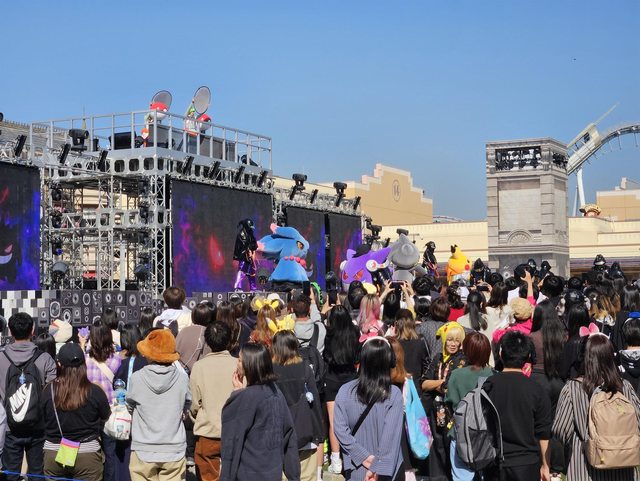 0840正是萬聖節寶可夢迎賓的開始時間,抵達現場後在表演區旁邊排了長長的隊伍,這裡