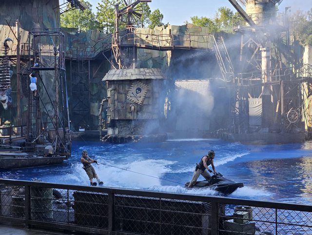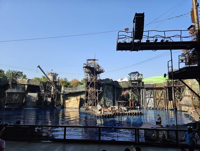那時旁邊的水世界表演剛好快開了,於是就加入了排隊的隊伍。