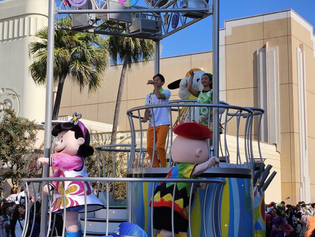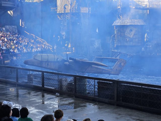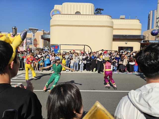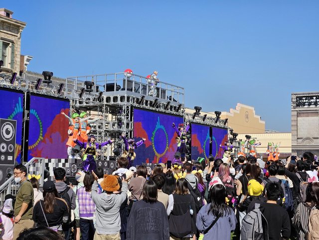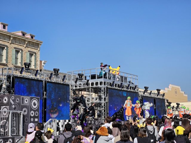此時也到了萬聖節舞台秀的時間,於是就去感受一下氣氛,但搖滾區已經人擠人了,所以
