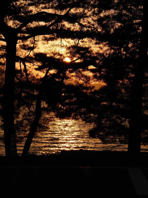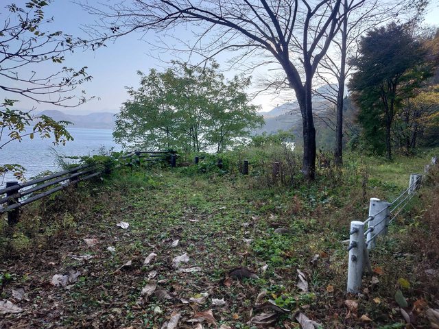 田澤湖畔站牌前夕陽