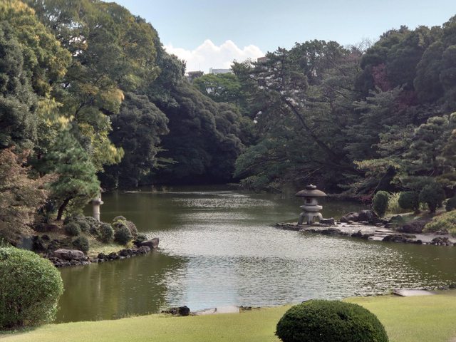 東京基本上楓葉都還沒黃多少 銀杏也還綠油油 園區整片綠意盎然