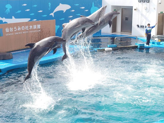 仙台水族館的室外海豚表演很精彩光這個就值回票價 不過我覺得上越水族館的室內海豚表
