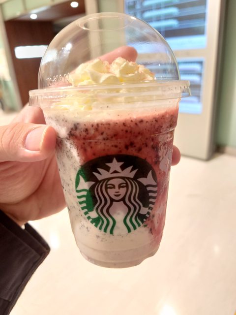 用星巴克特製限定草莓奶昔(加巧克力脆片少冰)收尾