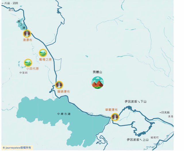 滿自然魅力的區域,其中包括華嚴瀑布、中禪寺湖、男體山、戰場之原、小田代原濕地一