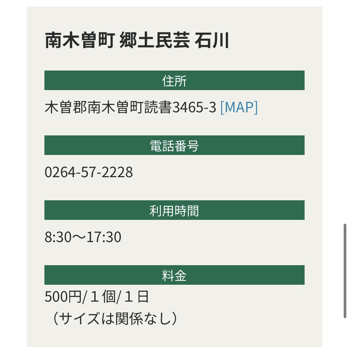 想請教南木曾站是否有類似案內所能幫忙寄放大型行李?查過資料只有中小型置物櫃..