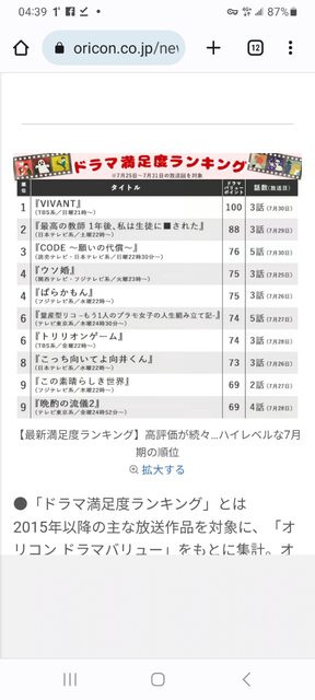 7月期日劇,Oricon最新滿足度調査(7月25~31日播出的日劇)