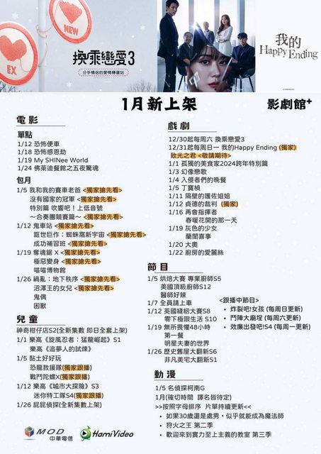 標題[情報] Hami Video 2024年1月上架&跟播日劇