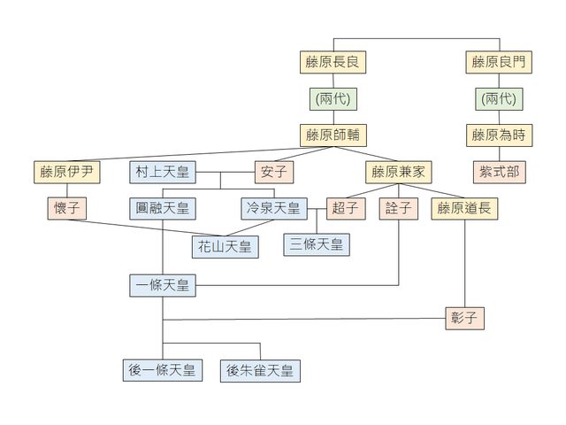 師輔把女兒安子嫁給村上天皇做為皇后,先後生下冷泉與圓融兩位天皇,