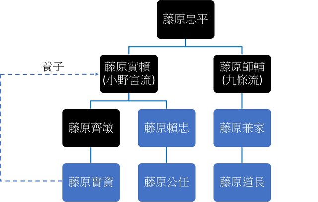 來參考個系譜圖。藤原實資的父親,是目前劇中關白藤原賴忠的弟弟藤原齊敏。不過後來