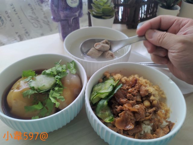 肉燥搭配肉鬆及小黃瓜,鹹中帶點酸甜的味道,讓餐點的口