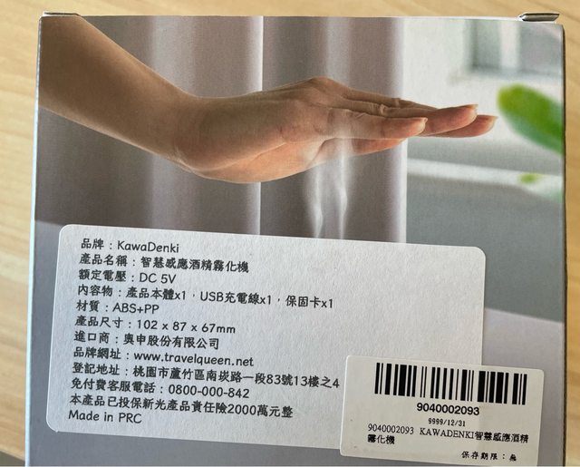 物品名稱:KawaDenki|無線感應酒精噴霧儀